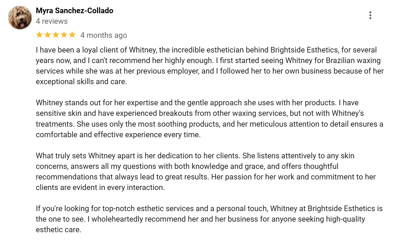 But don’t just take our word for it—read what our clients have to say! Explore reviews from real people who have experienced the Brightside difference, from smoother skin to enhanced confidence.